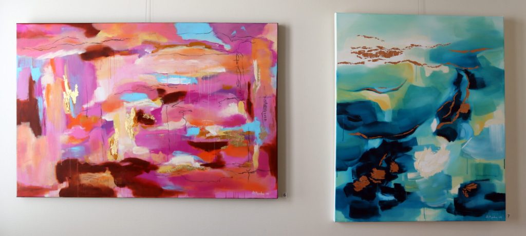 Hän maalaan enimmäkseen abstrakteja tauluja akryylimaaleilla, mutta yhdistää töihinsä myös muita tekniikoita. Anna on taiteilijana pääosin itseoppinut – tai edelleen oppiva, sillä matka on vasta alussa.